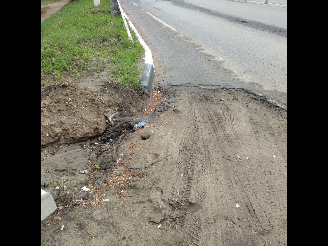 от времени просело дорожное полотно вокруг бетонной трубы ливневой канализации проходящей под дорогой на перекрестке ул. Попова и ул. Матросова, в результате чего образовалась н...