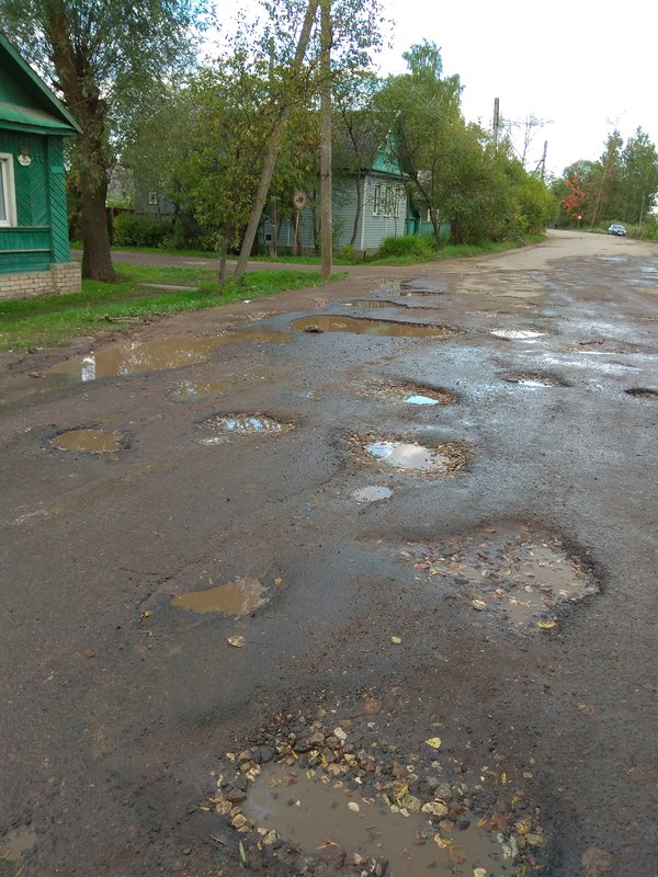 Дорога нормально не ремонтировалась очень много лет (более 12 лет), подсыпались ямы в асфальте грязью. Ямы не маленькие, иномарки чиркают защитой. Лужи стоят 10 месяцев из 12.