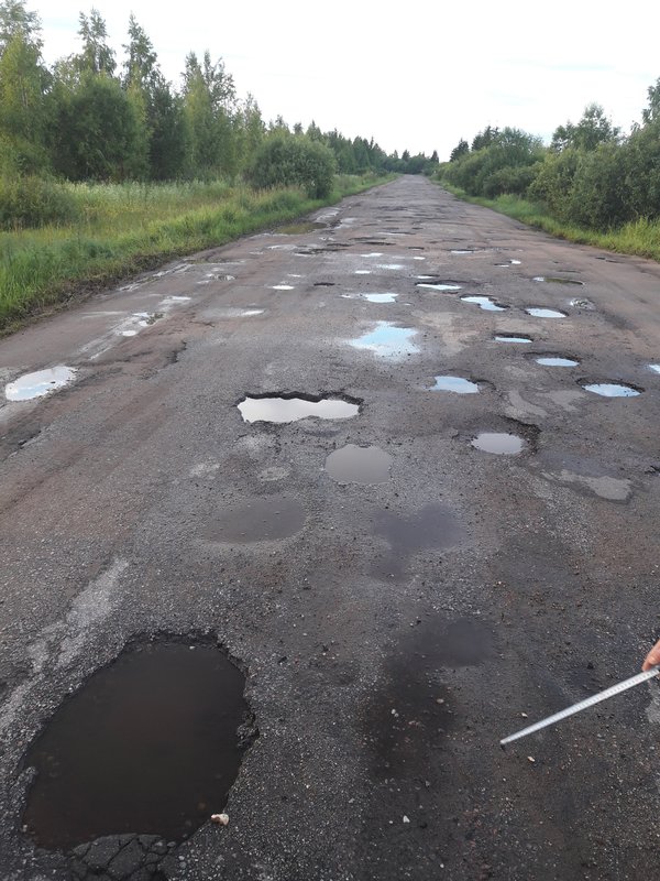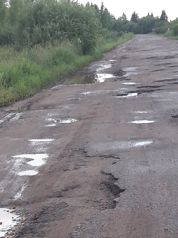 Дорога в ужасном состоянии. Сделанный в этом году некачественный ямочный ремонт до этого участка не дошел. Под лужами уже почти воронки. Далее дорога переходит в грунтовую, по с...