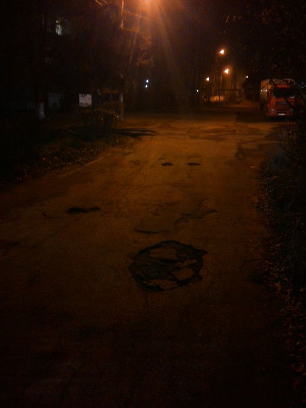 Огромные ямы во дворе у дома и к подъезду к почте Россия