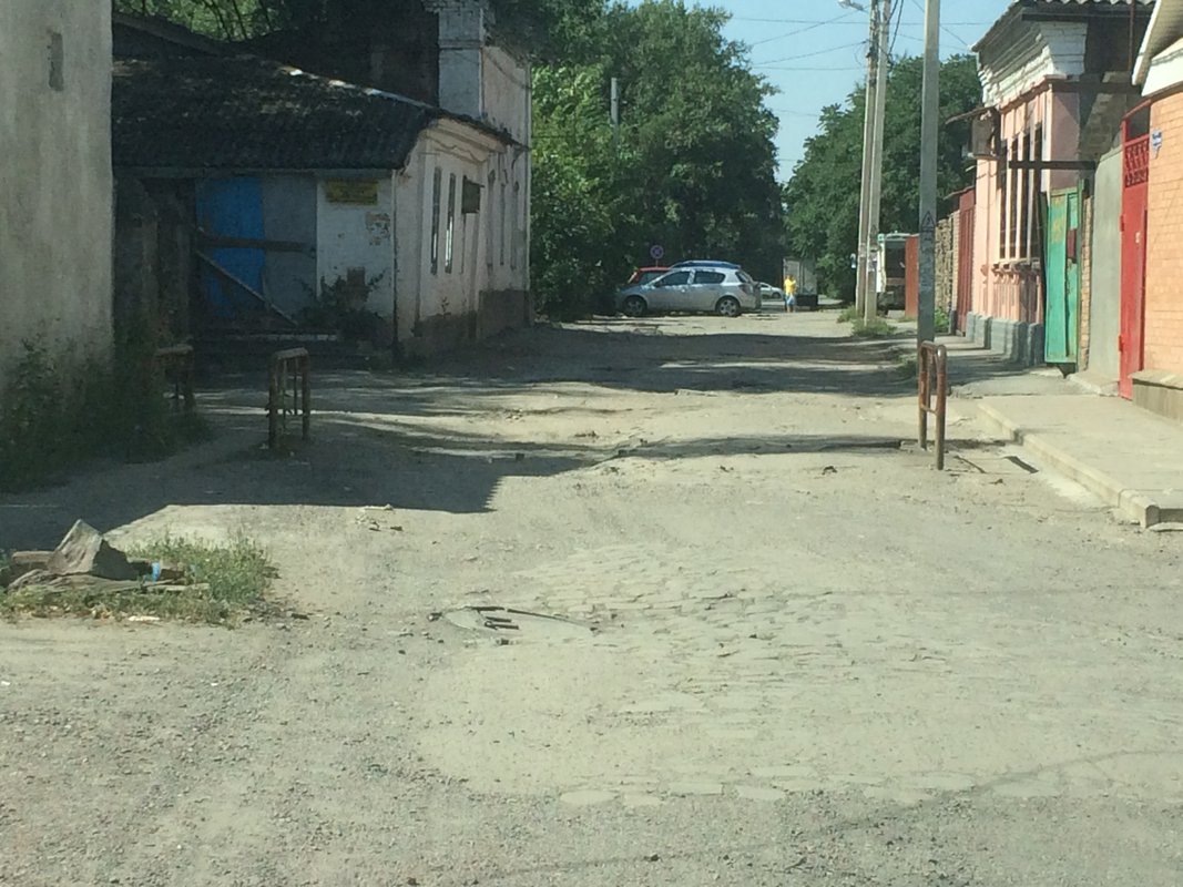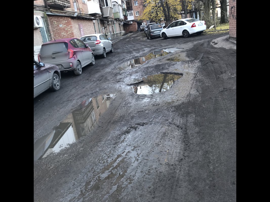 Город Шахты, поселок Артем. Пересечение Дубинина и Кривошлыкова (на фото ул. Кривошлыкова, осень 2017). В начале октября Водоканал (по информации местной газеты) раскопал транше...