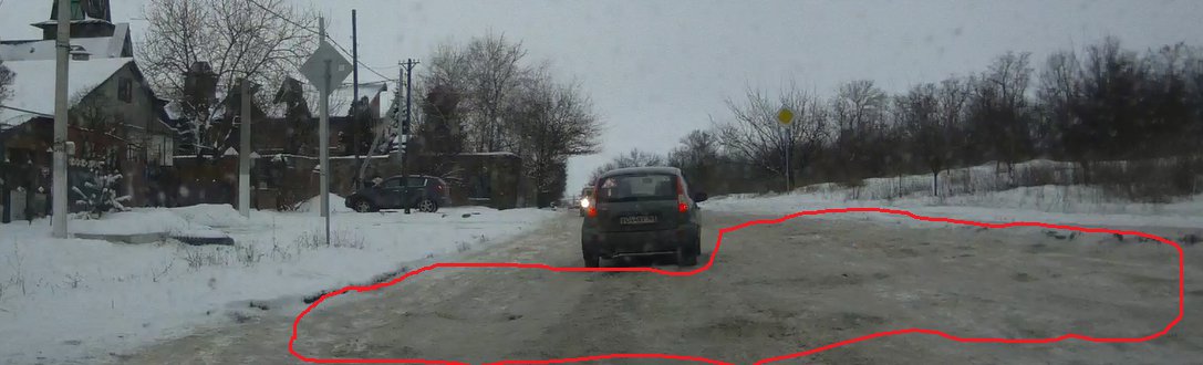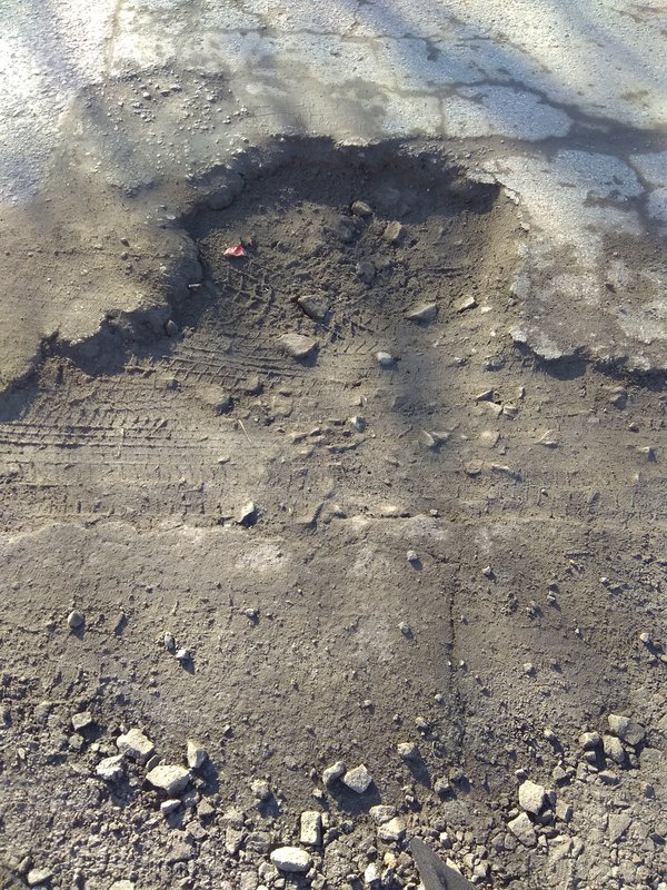 Яма достаточно длинная и глубокая, расположена на перекрестке дорог, ее не видно в ночное время и при плохих погодных условиях (дождь, снег)