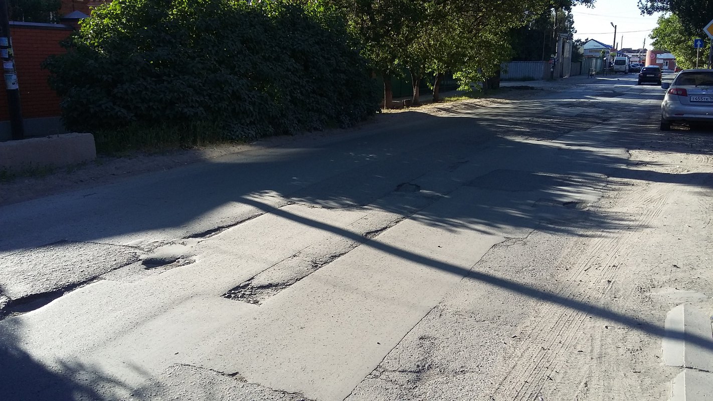 Мятый асфальт, имеются ямы и стремительно появляются новые