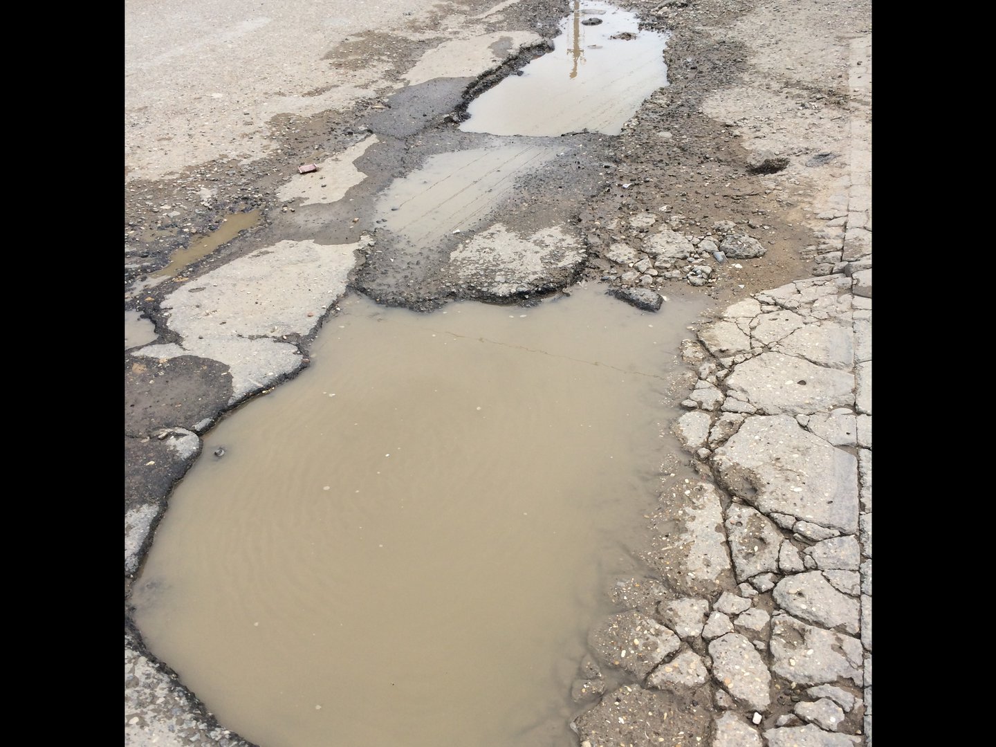 Разбитая дорога, отсутствует разметка