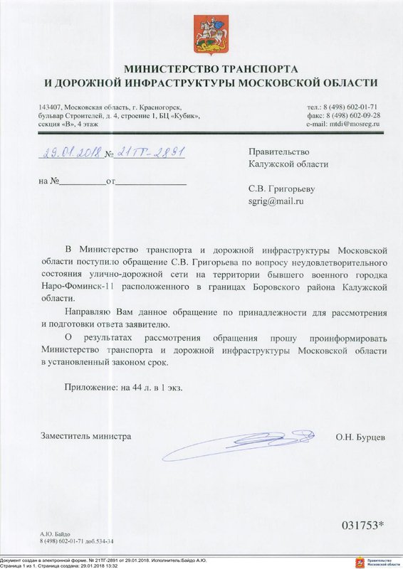 Наро-Фоминск-11/ Боровск-1 (Митяево) - территория убитых дорог не соответствующих ГОСТ Р 50597-93, ГОСТ 10807-78, ГОСТ 13508-74, ГОСТ 23457-86 и СНиП 2.05.02-85!!!, http://dorogi-onf.ru/problem/466/ http://dorogi-onf.ru/problem/34970/ Жители г.Наро-Фоминск-11 платят транспортный налог в бюджет Московской области!!! Жители дома № 13 г.Боровск-1 транспортный налог уплачивают в бюджет Калужской области!!! Фотографии состояния дорожного покрытия в бывшем военном городке Наро-Фоминск-11/ Боровск-1 (Митяево), https://vk.com/album-92690509_225030735 О защите прав и законных интересов жителей г.Наро-Фоминск-11/ г.Боровск-1 и г.Серпухов-15 Московской области!!!, https://democrator.ru/petition/o-zashhite-prav-i-zakonnyh-interesov-zhitelej-gnar/?share_mark=0b9dda30636d4d5e2ddbc1c4b55fabf7 Проблема зарегистрирована на портале "Добродел" от 6 января 2018г. № 1230948, https://dobrodel.mosreg.ru/claims/1230948 #наро_фоминск_11, #нарофоминск11, #нара_11, #нара11, #боровск_1, #боровск1, #митяево, #микрорайон_митяево, #микрорайонмитяево, #военный_городок_14, #военныйгородок14, #вч02014, #вч75555, #курилово, #серпухов_15, #серпухов15, #онф, #онф_мо, #онфмо, #оаославянка, #ооогужф, #фгбу_цжку_по_вкс_мо_рф, #фгбу_цжку, #фгбуцжку, #фгбуцжкуповксморф, #мо_рф, #морф, #вооружённые_силы, #вооружённыесилы, #шойгу, #шойгуск, #московская_область, #московскаяобласть, #подмосковье, #андрейворобьёв, #воробьёваю, #калужская_область, #калужскаяобласть, #артамоновад, #федеральная_проблема, #губернатормо, #стратегиягубернатора, #армия2017, #городскаясреда, #задорогибезям, #убитыедороги, #экоонф, #ecoonf