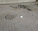 ул. Тимирязева. Провал грунта и брусчатки вокруг колодцев и вдоль решетки ливневой канализации.