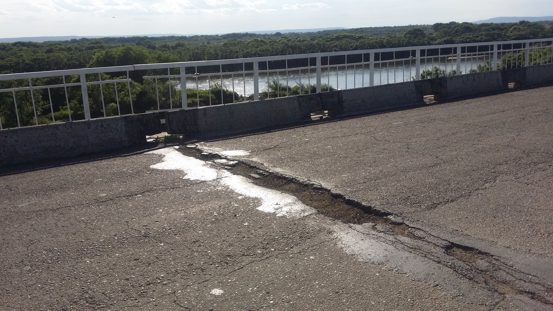 Прошу провести ремонт асфальтового покрытия на мосту через реку Раздольная, в р-не с. Утёсное, так как на этом участке глубокие выбоины.