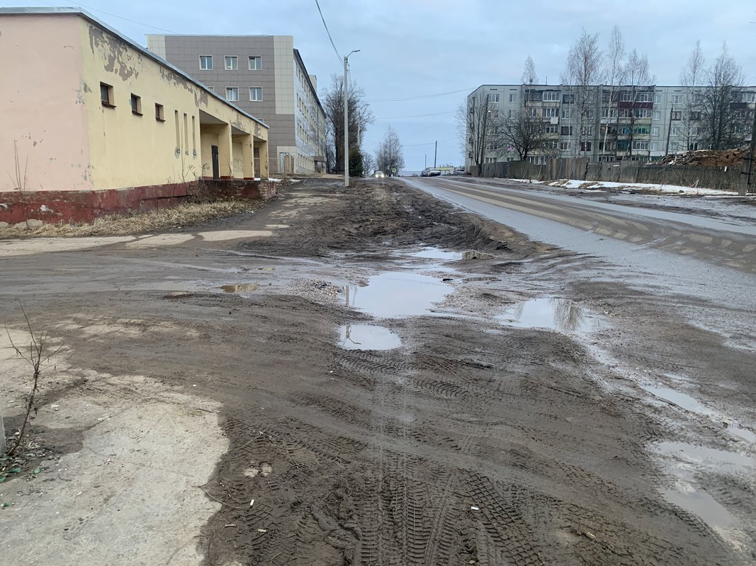 Дорога напоминает собой смесь глины,песка и камней. Социально значимая тк.по ней идут от остановки люди в больницу,в Нивицы. Единственный подъезд к многоквартирному жилому дому. Развалиется зачастую движущимися большегрузами на котельную №9 и автотранспортом в гаражный кооператив требует капитального ремонта.