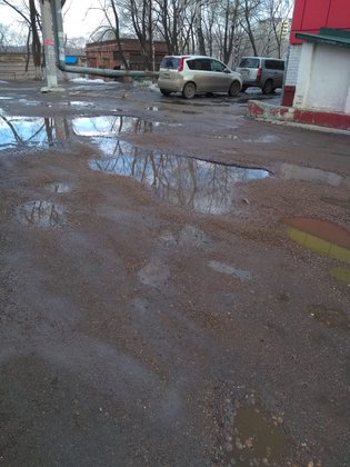Жители района постоянно пишут в администрацию, с 2019 года отписок получено более 20. Это подъезд к детской библиотеке #9. Лужи стоят постоянно. В основном передвижение весной и в непогоду проходит по бордюрам.