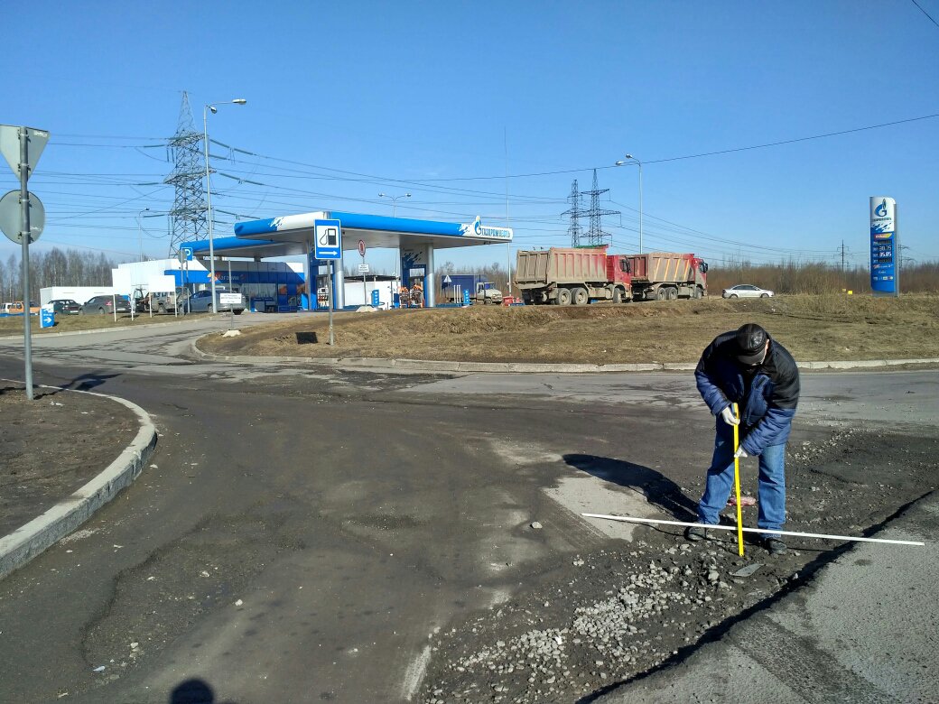 Глубокая широкая яма, которую на объехать на пересечении ул. Бугровская и пр. Энгельса, а так же обширное разрушенное асф. покрытия на Бугровской ул. На пересечении ул. Бугровская и пр. Энгельса (у заправки Газпром по адресу пр. Энгельса д. 190).