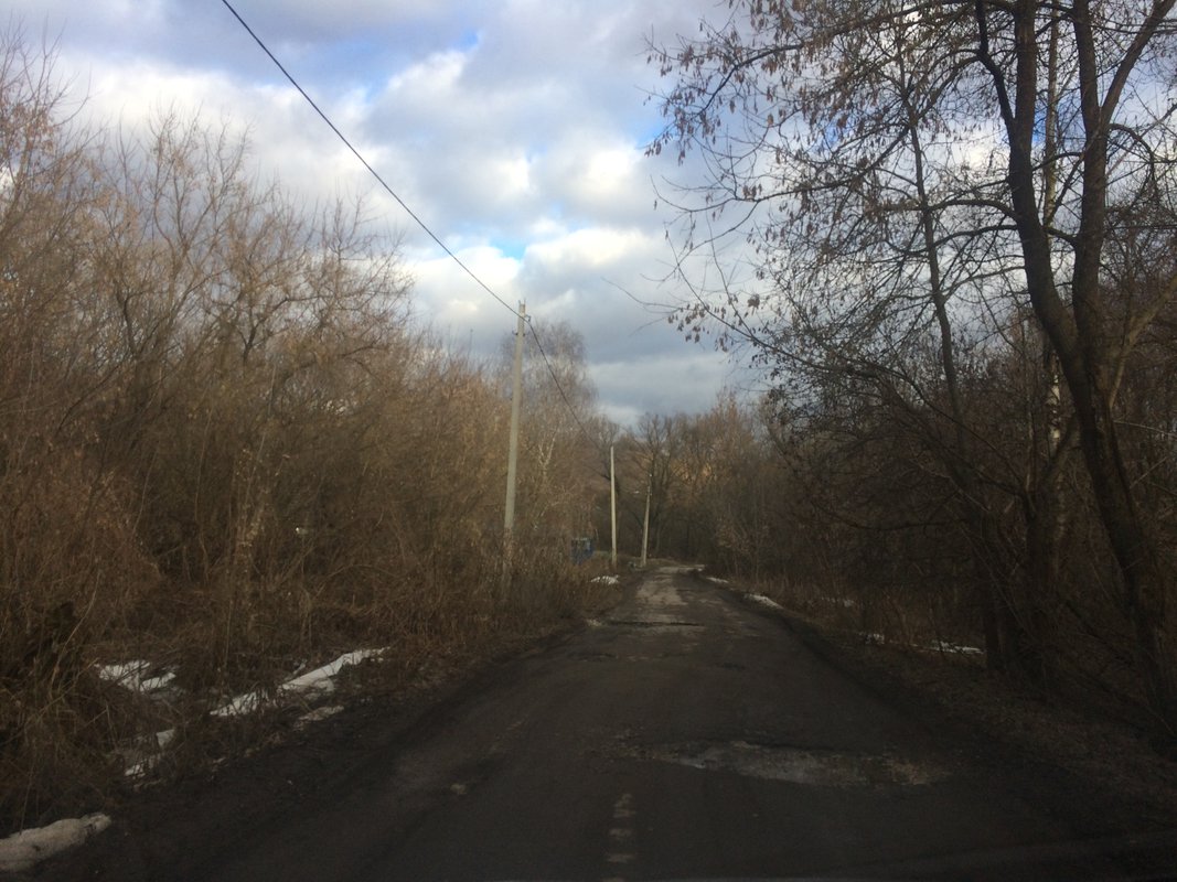 С поворота и вдоль всей улицы множество ям и глубоких трещин