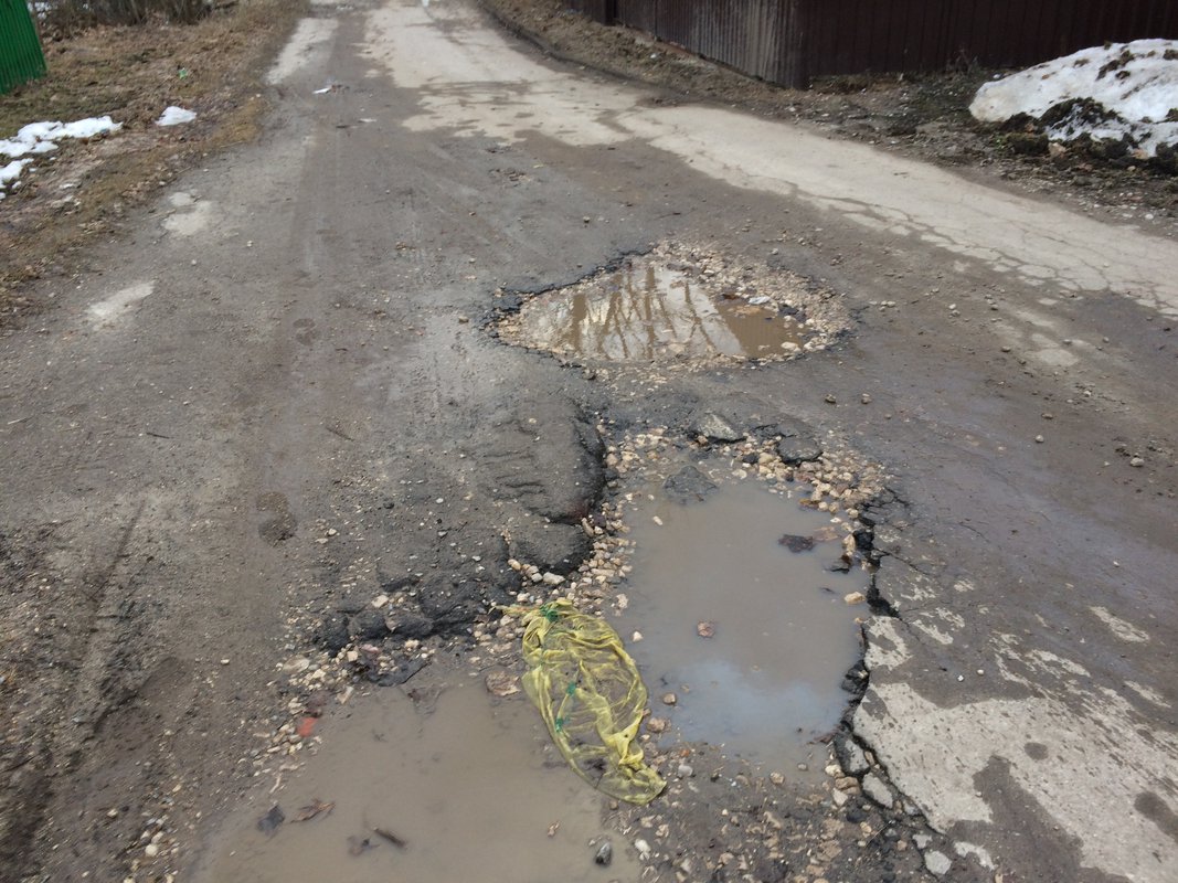 Очень много ям, местами дорога абсолютно разбита, например, у завода